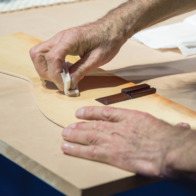 Posted on April 17, 2026April 17, 2026 by Dale Phillips A Rubbed-Oil Finish Method for Classical Guitar A Rubbed-Oil Finish Method for Classical Guitar by Kevin Aram based on his 2014 Convention workshop Originally published in American Lutherie #127, 2014 The purpose of this article is to explain the methods I use to oil finish my guitars. It is based on the workshop I gave at the 2014 GAL Convention. The workshop itself was a tad anarchic and the transcription of the proceedings was rather rambling, so it was decided that a rewrite was the way to go. I am not referring to a brushed-oil-varnish type of finish that you might find on a violin or cello or indeed some guitars. This is a rubbed oil finish using a Liberon Finishing Oil. This is the only product I recommend, and I understand it is widely available in the U.S. as well as here in England and elsewhere. It is made from tung oil with added driers. The people at Liberon aren’t saying any more than this. It is fairly pleasant to use (on a par with shellac) and the smell will not send you running from your workshop. If you check out the Liberon website, there is a safety sheet. The main precaution to take is to not leave any cloths that have been used to apply the oil in the workshop, as it is possible for them to self-combust. Safely dispose of them straight away. Become A Member to Continue Reading This Article This article is part of the Articles Online featured on our website for Guild members. To view this and other web articles, join the Guild of American Luthiers. For details, visit the membership page. MEMBERS: login for access or contact us to setup your account.
